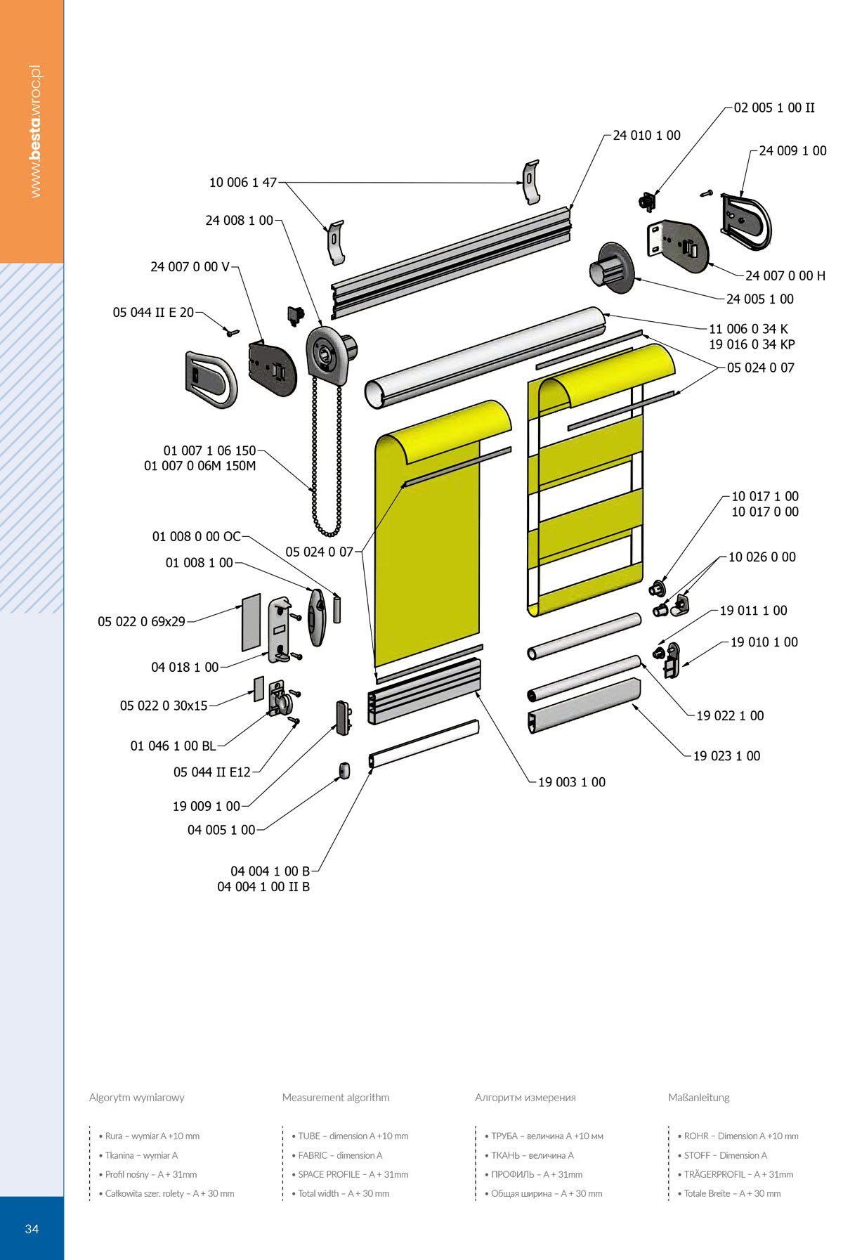 BXL system – designed for free-hanging roller shutters on a 34 mm dia. tube. The roller shutter can be mounted in all planes using clips attached to the aluminium support profile or directly to the ground using horizontally and vertically adjustable screws.
