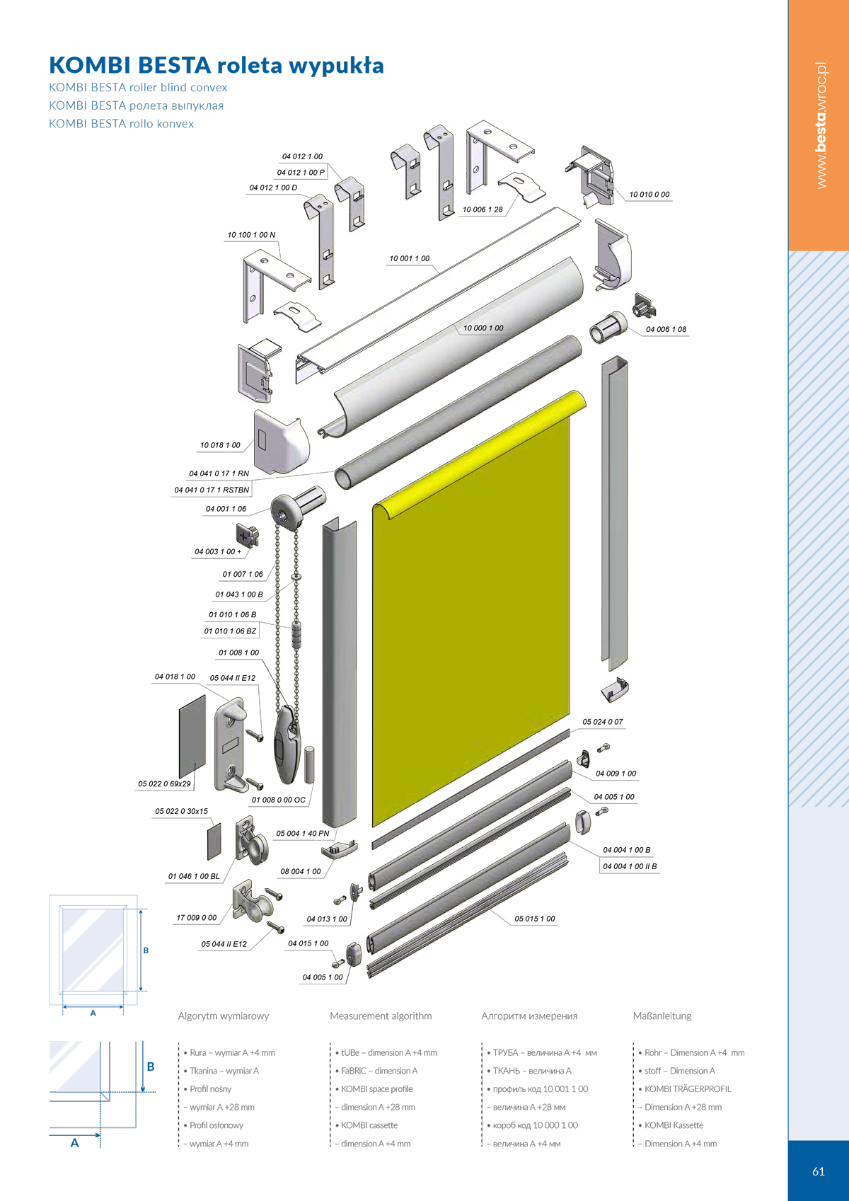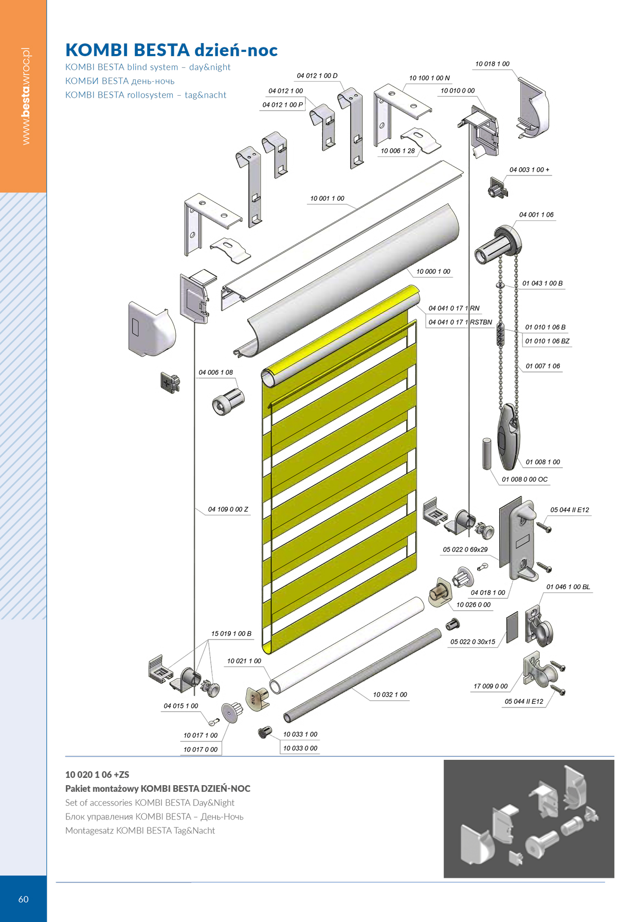 Besta Kombi roller-blind system is a continuation of the Idea of Unification. It gives the possibility of producing different types of roller blinds, depending on the customer’s needs, always using the same basic elements: set of accessories, tube, space profile and cassette.