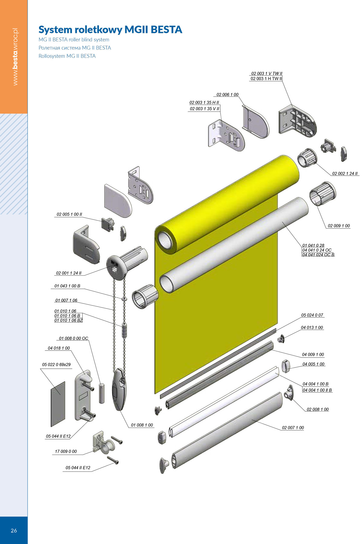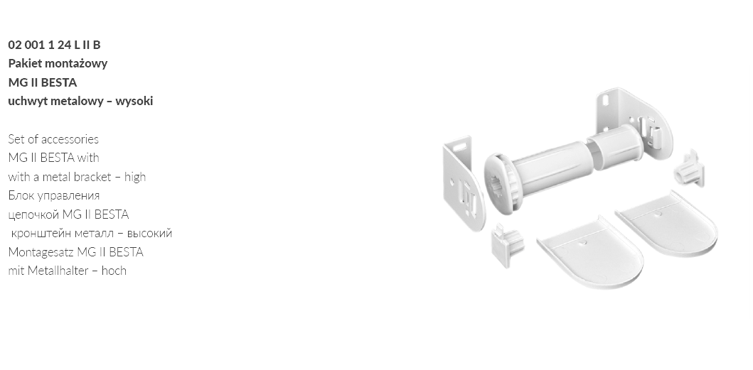 MG II system is used with free-hanging roller blinds, installed on ø24 or ø28 mm tube, mounted on the wall or ceiling. It has been equipped with a new self-locking mechanism with enhanced locking force, driven with t-6 chain.